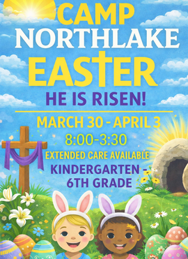 Camp Northlake is a nondenominational Christian day-camp for students in Kindergarten - 6th grade, offering a 9 week summer camp, enrichment camps, and seasonal holiday camps to our community. Camp Northlake is a ministry of Northlake Christian School.